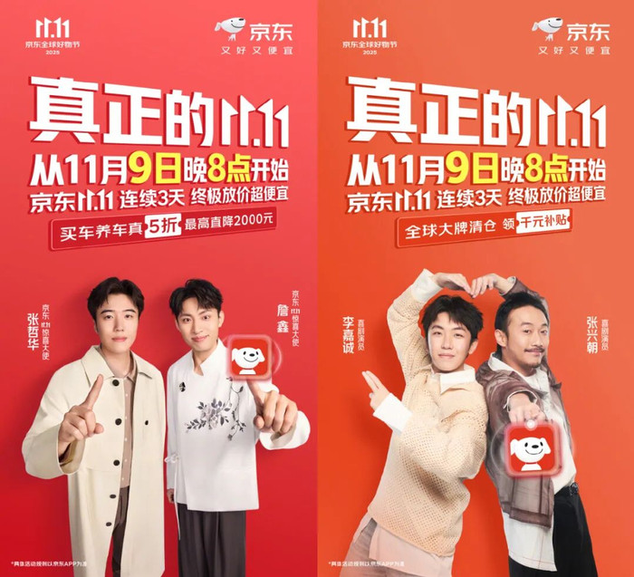例如京东及各业务线在这个双十一设立了京东11.11上新惊喜日,配上新编版潮流代言人张艺兴的《闹天宫》;“苏超”决赛当天,邀请武艺等嘉宾直播互动的球迷惊喜日;以《疯狂动物城》领衔多个IP形象构成宣传片的吃喝玩乐惊喜日;此外还有风尚咖啡日、超级直播日等等,每个不同的节点,推出的福利活动都各有侧重、不尽相同,主打一个“节日”不咋停。